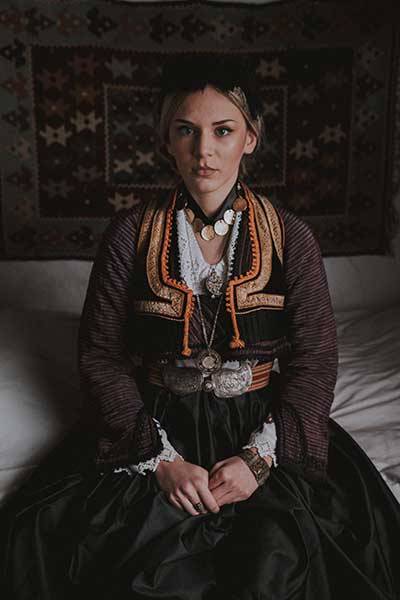 Detalji ženske gradske nošnje iz Kreševa, haljetak s rukavima - saltica, prslučić - ječerma, filigranski nakit